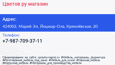Цветов.ру, магазин по адресу 424002, Марий Эл, Йошкар-Ола, Кремлёвская, 20 в дальнейшем Организация, размещена в следующих категориях: