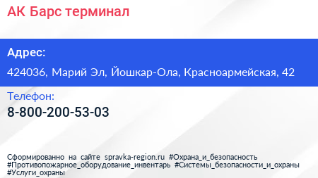 АК Барс, терминал по адресу 424036, Марий Эл, Йошкар-Ола, Красноармейская, 42 в дальнейшем Организация, размещена в следующих категориях: