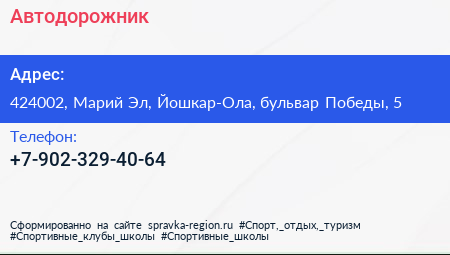 Автодорожник по адресу 424002, Марий Эл, Йошкар-Ола, бульвар Победы, 5 в дальнейшем Организация, размещена в следующих категориях: