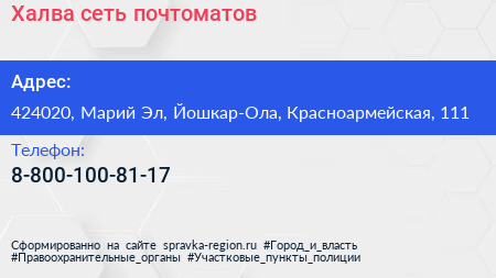 Халва, сеть почтоматов по адресу 424020, Марий Эл, Йошкар-Ола, Красноармейская, 111 в дальнейшем Организация, размещена в следующих категориях: