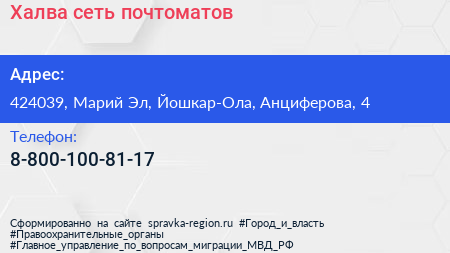 Халва, сеть почтоматов по адресу 424039, Марий Эл, Йошкар-Ола, Анциферова, 4 в дальнейшем Организация, размещена в следующих категориях: