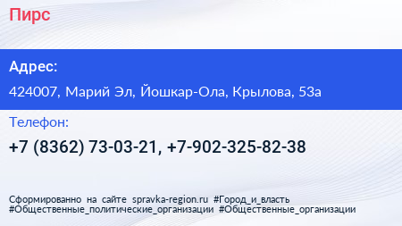 Пирс по адресу 424007, Марий Эл, Йошкар-Ола, Крылова, 53а в дальнейшем Организация, размещена в следующих категориях: