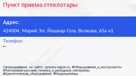 Пункт приема стеклотары по адресу 424004, Марий Эл, Йошкар-Ола, Волкова, 65а к1 в дальнейшем Организация, размещена в следующих категориях: