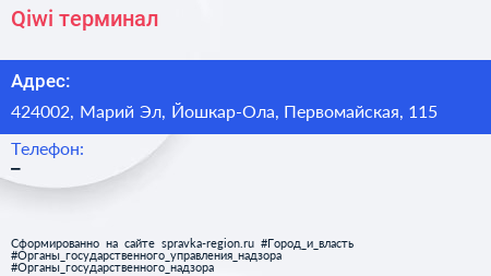Qiwi, терминал по адресу 424002, Марий Эл, Йошкар-Ола, Первомайская, 115 в дальнейшем Организация, размещена в следующих категориях: