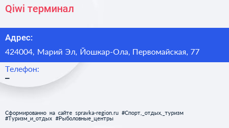 Qiwi, терминал по адресу 424004, Марий Эл, Йошкар-Ола, Первомайская, 77 в дальнейшем Организация, размещена в следующих категориях: