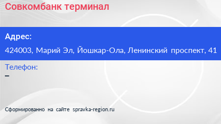 Совкомбанк, терминал по адресу 424003, Марий Эл, Йошкар-Ола, Ленинский проспект, 41 в дальнейшем Организация, размещена в следующих категориях: