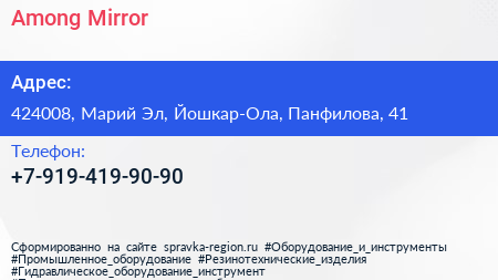 Among Mirror по адресу 424008, Марий Эл, Йошкар-Ола, Панфилова, 41 в дальнейшем Организация, размещена в следующих категориях: