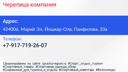 Черепица, компания по адресу 424006, Марий Эл, Йошкар-Ола, Панфилова, 33а в дальнейшем Организация, размещена в следующих категориях: