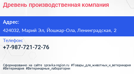 Древень, производственная компания по адресу 424032, Марий Эл, Йошкар-Ола, Ленинградская, 2 в дальнейшем Организация, размещена в следующих категориях: