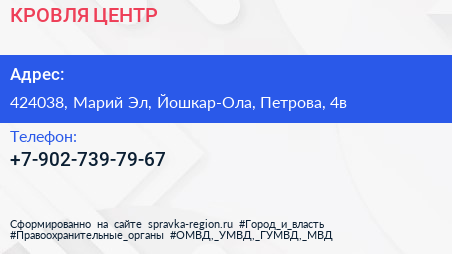 КРОВЛЯ-ЦЕНТР по адресу 424038, Марий Эл, Йошкар-Ола, Петрова, 4в в дальнейшем Организация, размещена в следующих категориях: