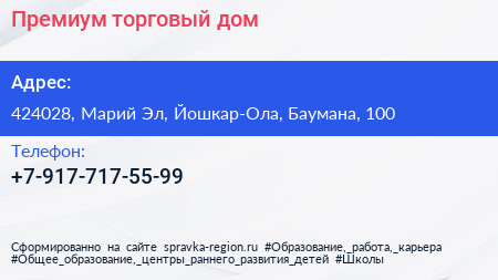 Премиум, торговый дом по адресу 424028, Марий Эл, Йошкар-Ола, Баумана, 100 в дальнейшем Организация, размещена в следующих категориях: