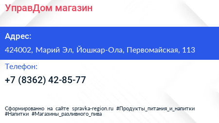 УправДом, магазин по адресу 424002, Марий Эл, Йошкар-Ола, Первомайская, 113 в дальнейшем Организация, размещена в следующих категориях: