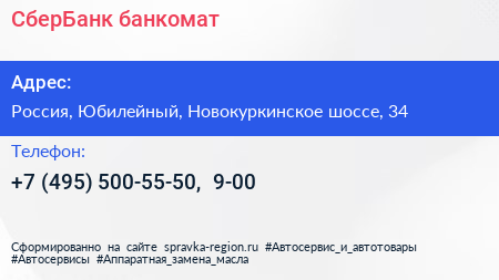 СберБанк, банкомат по адресу Главное управление МЧС России по Московской области, 34, Новокуркинское шоссе, Машкино, район Куркино, Москва, Центральный федеральный округ, 125466, Россия в дальнейшем Организация, размещена в следующих категориях:
