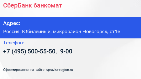 СберБанк, банкомат по адресу Академия гражданской защиты МЧС России, Соколовская улица, Новогорск, Химки, городской округ Химки, Московская область, Центральный федеральный округ, 141435, Россия в дальнейшем Организация, размещена в следующих категориях: