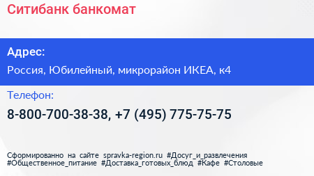Ситибанк, банкомат по адресу МЕГА Химки, 1, Ленинградское шоссе, Родионово, микрорайон ИКЕА, Химки, городской округ Химки, Московская область, Центральный федеральный округ, 141410, Россия в дальнейшем Организация, размещена в следующих категориях: