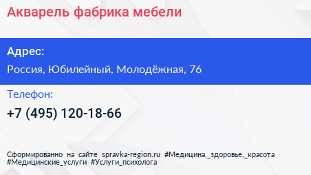 Акварель, фабрика мебели по адресу Robert Style, 76, Молодёжная улица, Новокуркино, район Куркино, Химки, городской округ Химки, Московская область, Центральный федеральный округ, 141501, Россия в дальнейшем Организация, размещена в следующих категориях: