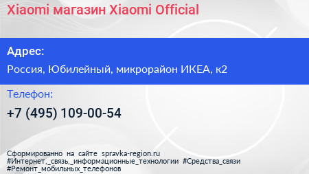 Xiaomi, магазин Xiaomi Official по адресу Vasilchuki Chaihona №1, 1, Ленинградское шоссе, микрорайон ИКЕА, Химки, городской округ Химки, Московская область, Центральный федеральный округ, 141410, Россия в дальнейшем Организация, размещена в следующих категориях: