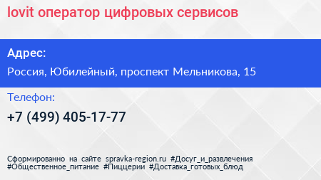 lovit)), оператор цифровых сервисов по адресу Vardex, 15, проспект Мельникова, Родионово, микрорайон ИКЕА, Планерная, Химки, городской округ Химки, Московская область, Центральный федеральный округ, 141501, Россия в дальнейшем Организация, размещена в следующих категориях: