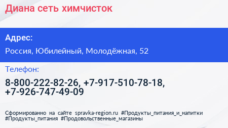 Диана, сеть химчисток по адресу Ozon, 52, Молодёжная улица, Родионово, Новокуркино, Новые Химки, Химки, городской округ Химки, Московская область, Центральный федеральный округ, 141501, Россия в дальнейшем Организация, размещена в следующих категориях: