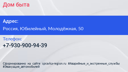 Для связи с организацией воспользуйтесь номером телефона: +7-930-900-94-39. Ежедневно с 10:00 до 21:00, вы можете обратиться в эту организацию.