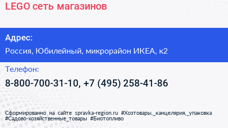 LEGO, сеть магазинов по адресу МЕГА Химки, 1, Ленинградское шоссе, Родионово, микрорайон ИКЕА, Химки, городской округ Химки, Московская область, Центральный федеральный округ, 141410, Россия в дальнейшем Организация, размещена в следующих категориях: