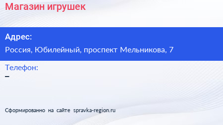 Магазин игрушек по адресу 7, проспект Мельникова, Родионово, Новокуркино, Новые Химки, Химки, городской округ Химки, Московская область, Центральный федеральный округ, 141501, Россия в дальнейшем Организация, размещена в следующих категориях: