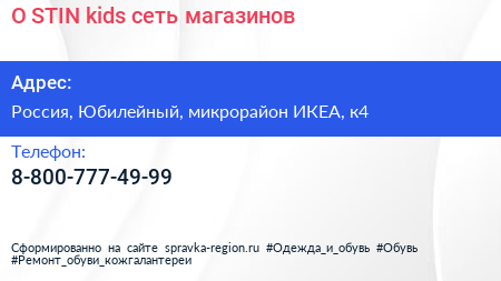 O`STIN kids, сеть магазинов по адресу МЕГА Химки, 1, Ленинградское шоссе, Родионово, микрорайон ИКЕА, Химки, городской округ Химки, Московская область, Центральный федеральный округ, 141410, Россия в дальнейшем Организация, размещена в следующих категориях:
