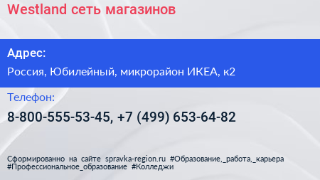 Westland, сеть магазинов по адресу МЕГА Химки, 1, Ленинградское шоссе, Родионово, микрорайон ИКЕА, Химки, городской округ Химки, Московская область, Центральный федеральный округ, 141410, Россия в дальнейшем Организация, размещена в следующих категориях:
