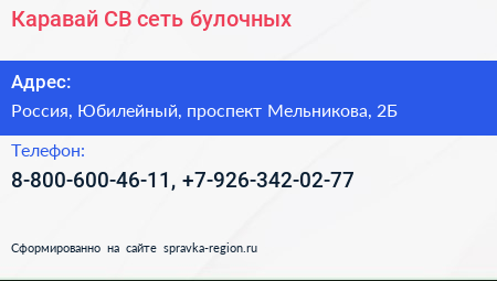 Каравай СВ, сеть булочных по адресу Альфа-Банк, 2Б, проспект Мельникова, Родионово, Новокуркино, Новые Химки, Химки, городской округ Химки, Московская область, Центральный федеральный округ, 141501, Россия в дальнейшем Организация, размещена в следующих категориях:
