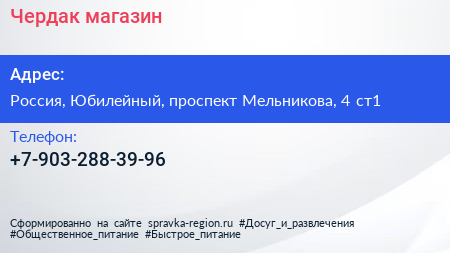 Чердак, магазин по адресу 4 с1, проспект Мельникова, Родионово, Новокуркино, Новые Химки, Химки, городской округ Химки, Московская область, Центральный федеральный округ, 141410, Россия в дальнейшем Организация, размещена в следующих категориях: