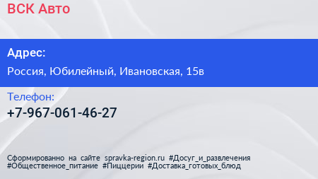 Для связи с организацией воспользуйтесь номером телефона: +7-967-061-46-27. Ежедневно с 09:00 до 21:00, вы можете обратиться в эту организацию.