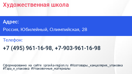 Художественная школа по адресу Центр художественной гимнастики И.А. Винер-Усмановой, 15, Олимпийская улица, Жилой комплекс "Олимпийская деревня", Новогорск, Химки, городской округ Химки, Московская область, Центральный федеральный округ, 141435, Россия в дальнейшем Организация, размещена в следующих категориях: