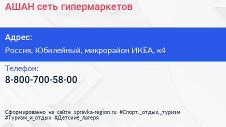 АШАН, сеть гипермаркетов по адресу МЕГА Химки, 1, Ленинградское шоссе, Родионово, микрорайон ИКЕА, Химки, городской округ Химки, Московская область, Центральный федеральный округ, 141410, Россия в дальнейшем Организация, размещена в следующих категориях: