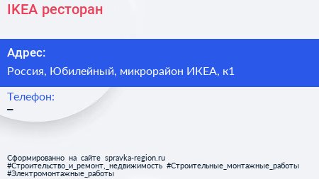 IKEA, ресторан по адресу МЕГА Химки, 1, Ленинградское шоссе, Родионово, микрорайон ИКЕА, Химки, городской округ Химки, Московская область, Центральный федеральный округ, 141410, Россия в дальнейшем Организация, размещена в следующих категориях: