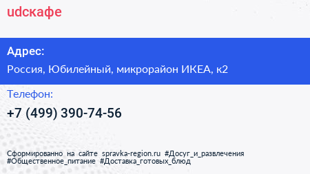 udcкафе по адресу МЕГА Химки, 1, Ленинградское шоссе, Родионово, микрорайон ИКЕА, Химки, городской округ Химки, Московская область, Центральный федеральный округ, 141410, Россия в дальнейшем Организация, размещена в следующих категориях: