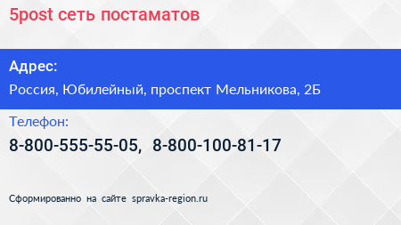 5post, сеть постаматов по адресу Авито, 2Б, проспект Мельникова, Родионово, Новокуркино, Новые Химки, Химки, городской округ Химки, Московская область, Центральный федеральный округ, 141501, Россия в дальнейшем Организация, размещена в следующих категориях: