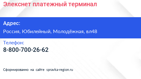 Элекснет, платежный терминал по адресу Да!, вл48, Молодёжная улица, Родионово, Новокуркино, Новые Химки, Химки, городской округ Химки, Московская область, Центральный федеральный округ, 119296, Россия в дальнейшем Организация, размещена в следующих категориях: