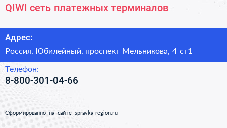 QIWI, сеть платежных терминалов по адресу Магнит, 4 с1, проспект Мельникова, Родионово, Новокуркино, Новые Химки, Химки, городской округ Химки, Московская область, Центральный федеральный округ, 141410, Россия в дальнейшем Организация, размещена в следующих категориях: