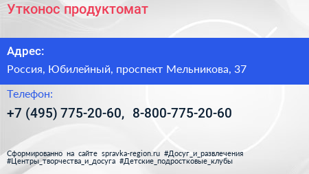 Для связи с организацией воспользуйтесь номером телефона: +7 (495) 775-20-60, 8-800-775-20-60. Ежедневно с 10:00 до 23:00, вы можете обратиться в эту организацию.