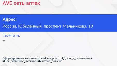 AVE, сеть аптек по адресу Фармленд, 10, проспект Мельникова, Родионово, Новокуркино, Новые Химки, Химки, городской округ Химки, Московская область, Центральный федеральный округ, 141410, Россия в дальнейшем Организация, размещена в следующих категориях: