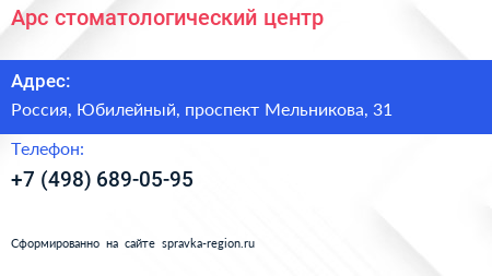 Арс, стоматологический центр по адресу Арс, 31, проспект Мельникова, Родионово, микрорайон ИКЕА, Планерная, Химки, городской округ Химки, Московская область, Центральный федеральный округ, 141501, Россия в дальнейшем Организация, размещена в следующих категориях: