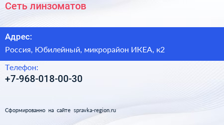 Сеть линзоматов по адресу МЕГА Химки, 1, Ленинградское шоссе, Родионово, микрорайон ИКЕА, Химки, городской округ Химки, Московская область, Центральный федеральный округ, 141410, Россия в дальнейшем Организация, размещена в следующих категориях: