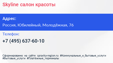 Skyline, салон красоты по адресу Ozon, 76, Молодёжная улица, Родионово, Новокуркино, Новые Химки, Химки, городской округ Химки, Московская область, Центральный федеральный округ, 141501, Россия в дальнейшем Организация, размещена в следующих категориях: