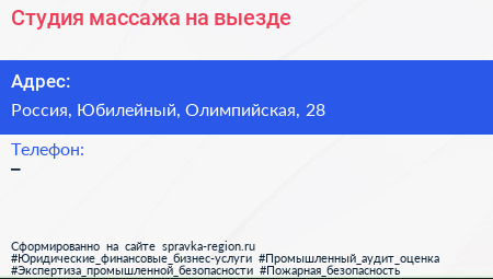 Студия массажа на выезде по адресу Центр художественной гимнастики И.А. Винер-Усмановой, 15, Олимпийская улица, Жилой комплекс "Олимпийская деревня", Новогорск, Химки, городской округ Химки, Московская область, Центральный федеральный округ, 141435, Россия в дальнейшем Организация, размещена в следующих категориях:
