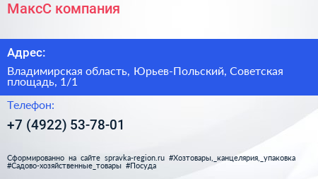 МаксС, компания по адресу Владимирская область, Юрьев-Польский, Советская площадь, 1/1 в дальнейшем Организация, размещена в следующих категориях:
