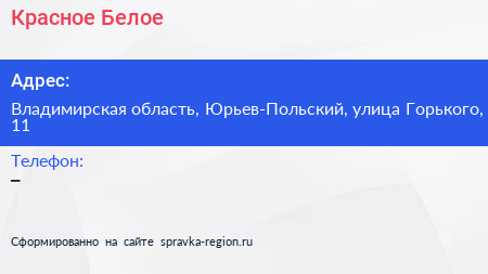 Красное & Белое по адресу Владимирская область, Юрьев-Польский, улица Горького, 11 в дальнейшем Организация, размещена в следующих категориях: