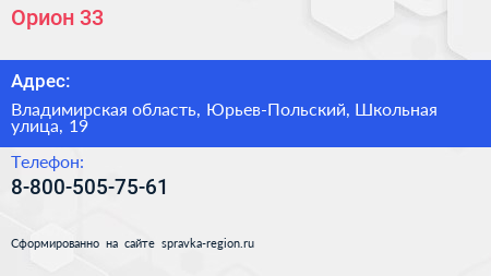 Орион 33 по адресу Владимирская область, Юрьев-Польский, Школьная улица, 19 в дальнейшем Организация, размещена в следующих категориях: