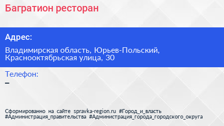 Багратион, ресторан по адресу Владимирская область, Юрьев-Польский, Краснооктябрьская улица, 30 в дальнейшем Организация, размещена в следующих категориях:
