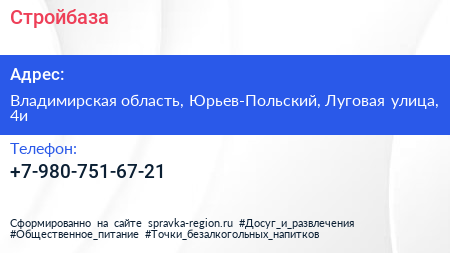 Стройбаза по адресу Владимирская область, Юрьев-Польский, Луговая улица, 4и в дальнейшем Организация, размещена в следующих категориях: