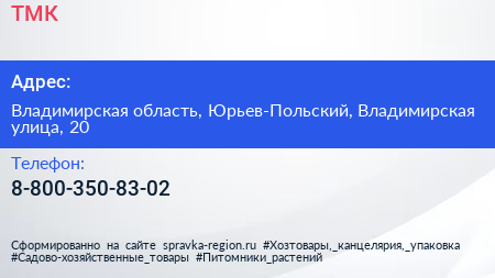 ТМК по адресу Владимирская область, Юрьев-Польский, Владимирская улица, 20 в дальнейшем Организация, размещена в следующих категориях: